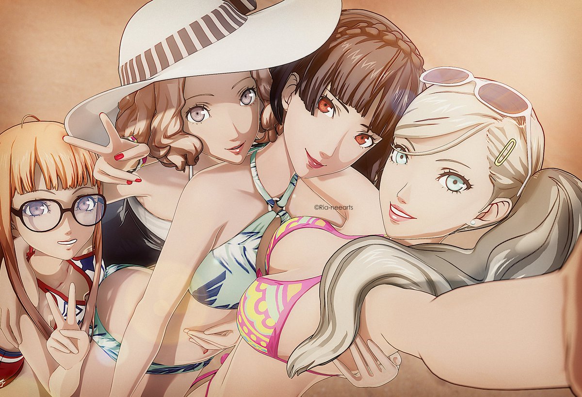 新 島 真 ,奥 村 春 ,佐 倉 双 葉 ,高 巻 杏 "Beach day! ☀ #Persona5 "Ria 🐇 の イ ラ ス ト